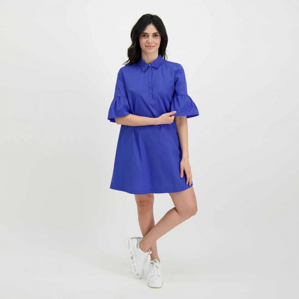 L’abito camicia Emme Marella Lucano da donna reinterpreta il classico modello chemisier in versione manica corolle a 3/4, per un look versatile eraffinato.