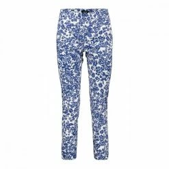 I pantaloni Emme Marella Fedra da donna, realizzati in raso stretch, conquistano per la fantasia floreale in stile provenzale, per un look romantico.