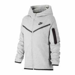 Realizzata in Tech Fleece, misto cotone e poliestere, offre comfort termico e traspirabilità ottimale in una struttura leggera. Vestibilità regular, con chiusura full zip, presenta cappuccio a collo alto, tasche laterali e una tasca sulla manica con zip, per la massima funzionalità e protezione.
