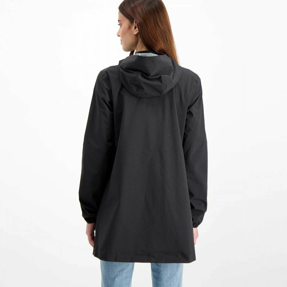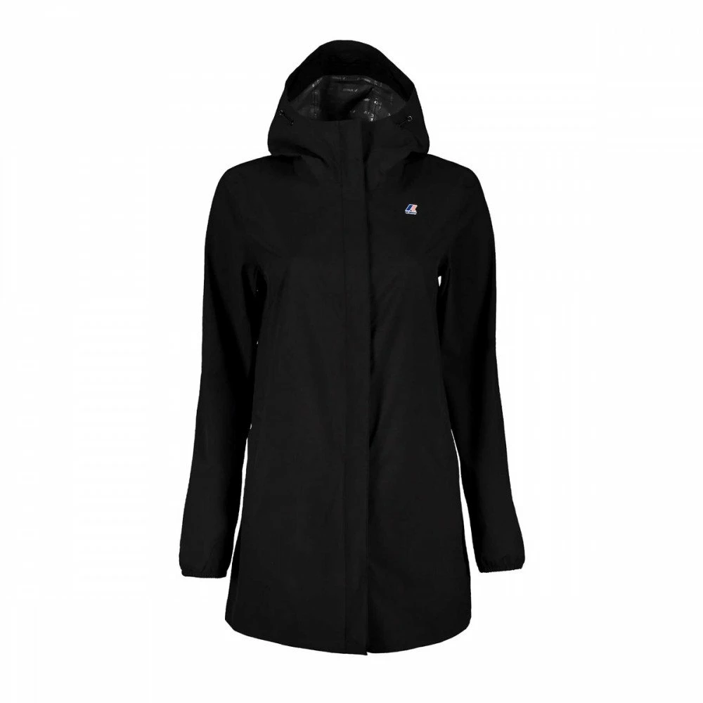 Realizzato in tessuto tecnico sintetico elasticizzato con cuciture termonastrate, è caratterizzato da una vestibilità regular, per la massima libertà di movimento. Impermeabile, traspirante e idrorepellente, è l’ideale per affrontare le temperature più miti. Design essenziale, presenta membrana interna con stampa all over K-Way, chiusura centrale full zip, cappuccio regolabile, rifinitura con nastro elastico sui polsi e tasche con zip.