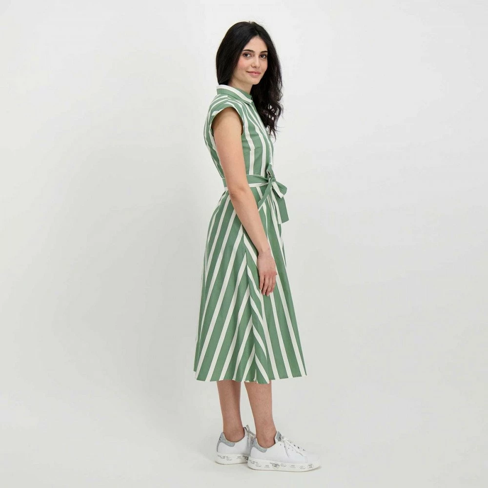 L‘abito Emme Marella Tunisi da donna sfoggia una lunga silhouette a chemisier rigata dall’inconfondibile eleganza sportiva.