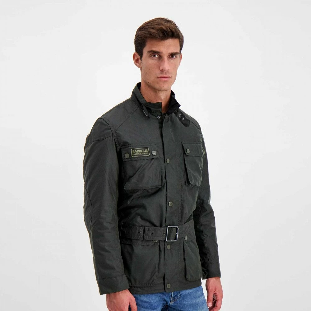 Del modello storico riprende la cintura in vita removibile, il colletto con chiusura a fibbia foderato in velluto a coste e le quattro tasche applicate sul davanti, con iconico badge Barbour International. Dal taglio attillato e contemporaneo, si presenta rinnovata nella struttura grazie a un pannello espandibile sotto il braccio per garantire massima libertà di movimento.