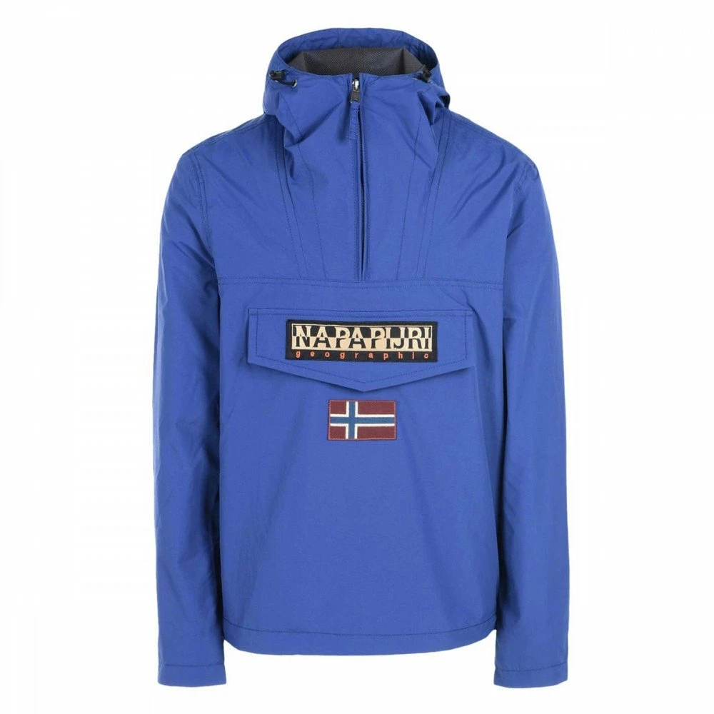 La giacca Napapijri RainForest Summer da uomo modello Anorak con cappuccio fisso e tasca al petto è realizzata in tessuto tecnico impermeabile e idrorepellente con fodera in rete a contrasto e cuciture nastrate.