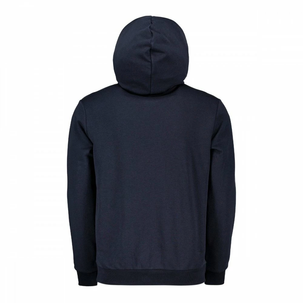 Vestibilità regular, realizzata in morbido misto cotone, è rifinita dal cappuccio con coulisse regolabile, comode tasche laterali con bottoni a pressione, fondo e polsini in costina. Completano il modello la zip decorata con il classico tape multicolor e il logo stampato sul petto, per un look autentico.